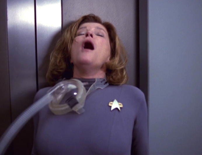 - The Thaw (VOY) – What better way to celebrate the Season of Fear than with Janeway and her crew confronting the personification of Fear itself. The crew of Voyager discover a planet that had suffered a devastating disaster and find some of the inhabitants in stasis. When Harry and B’Elanna hook themselves up to the neural network, they meet the Clown, deliciously played by Michael McKean. The two officers soon find themselves in a struggle for their lives, and Janeway must confront Fear in order to save everyone. Clowns have often been seen as scary, and this one does not disappoint.